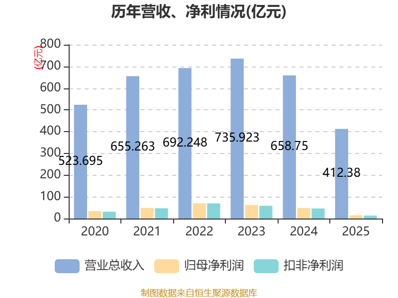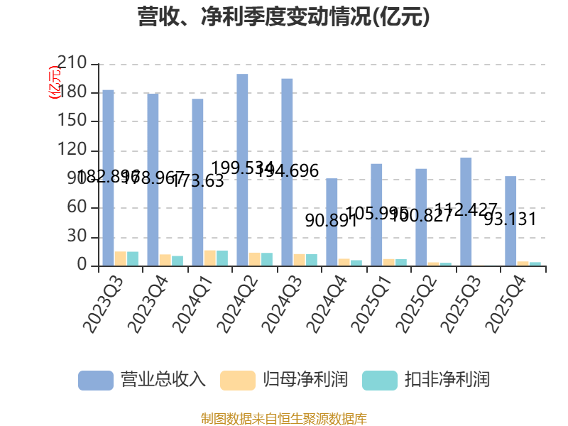 中证智能财讯淮北矿业(600985)3月28日浮现2025年年度论说。2025年,公司达成生意总收入412.38亿元,同比着落37.40%;归母净利润15.06亿元,同比着落68.98%;扣非净利润13.53亿元,同比着落70.87%;筹办举止产生的现款流量净额为54.28亿元,同比着落40.11%;论说期内,淮北矿业基本每股收益为0.56元,加权平均净财富收益率为3.59%。公司2025年度分拨预案为:拟向合座鞭策每10股派现2.5元(含税)。